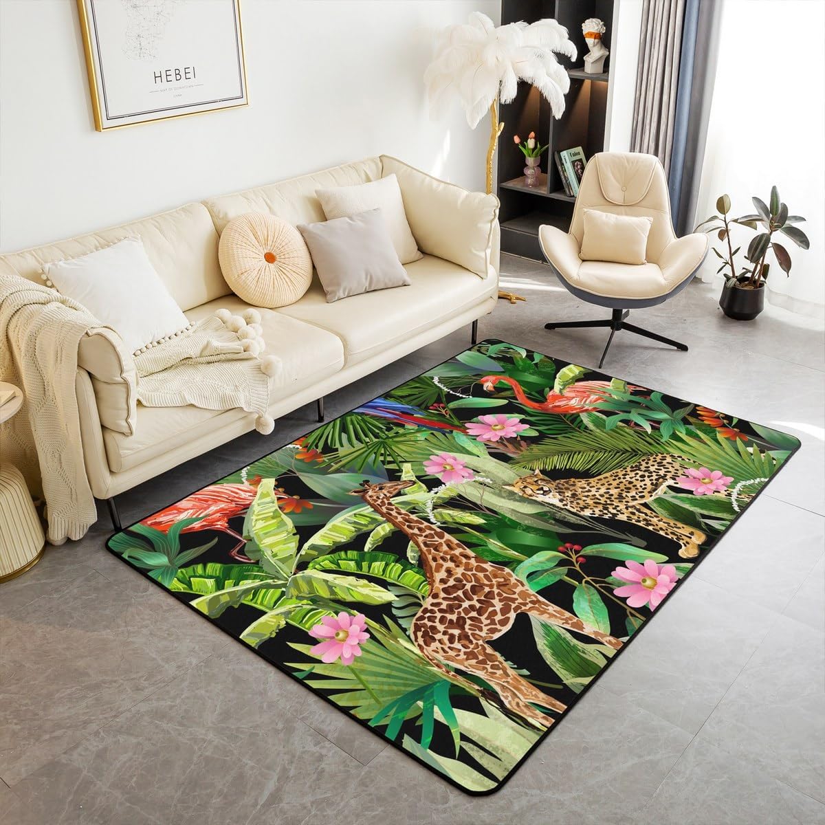 Tips: The carpet will arrive with temporary creases, you can repeat the process several times by rolling the carpet in the opposite direction of the creases and then spreading the carpet flat and pressing the edges of the roll with a heavy object to restore the carpet to its original state. We recommend using an iron to iron carpets at low temperatures more quickly Size: 2 sizes can be chosen of our rugs dimension: 3' x 5' x 0.39'' 100cm x 150cm x 1cm. 5' x 6'6'' x 0.39'' 150cm x 200cm x 1cm. Material: Made with 100% polypropylene. No chemicals used, No dye substance harming the health of you or your family. The rubber non slip design on the bottom of the area rug for bedroom is the safest protection. One piece is enough,you don't need to buy additional non slip carpet pads Machine washable: Soak in cold water for 10 minutes,then folded twice and put into the washing machine on gentle cycle, and then dry in the air.Do not use chlorine or bleach Features: With many different patterns to choose from, you will easily find rugs to coordinate with your decor. Our rug is widely used as the floor rug as well as a play mat, kitchen rug, bedroom rug, laundry mat, living room mat, office rug etc. Notes: Due to the light and screen setting difference, the item's color may be slightly different from the pictures Please allow slight dimension difference due to different manual measurement