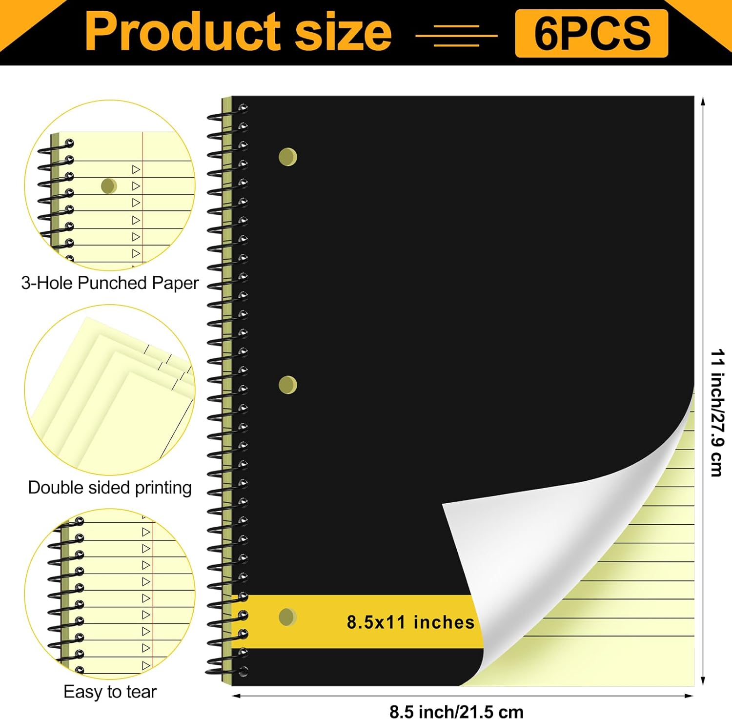Features: Spiral notebook provides a more convenient way for daily life and learning. These notebooks are designed with spiral perforations, there are tear marks on each piece of paper, which makes it easier to tear off any unnecessary pages. You can tear off the important contents of your records at any time and put it in a prominent position. Spiral notebook is ideal for students, teachers, business manager, executive, home, school or office, business, restaurants, and nice to use as project planner notebook for meeting notes, follow-ups and more. You can use legal pads to create reminders, to-do lists, notes, and more. Specifications: Material: paper Color: neutral color Size: about 8.5 x 11 inches/ 21.5 x 27.9 cm Package includes: 6 x Spiral notebook Notes: Manual measurement, please allow slight errors on size. The color may exist a slight difference due to different screen displays. Because the item is small, take care not to swallow.