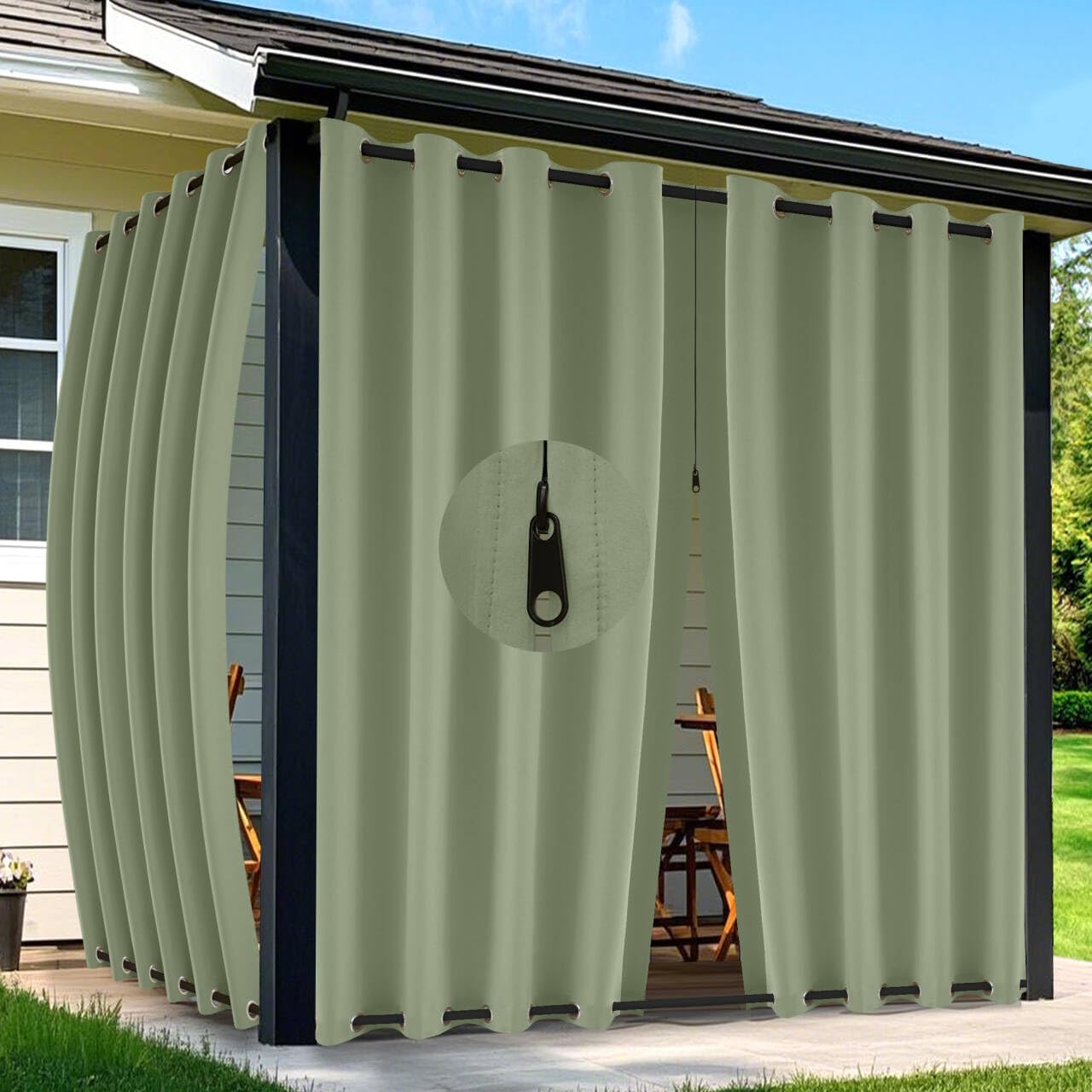 • Unique Zipper Design: This outdoor curtains for patio waterproof features a unique zipper design, when the zipper is fully pulled up, it can completely block out sunlight, rain, snow, and dust, keeping your furniture looking as good as new all the time. Meanwhile, outdoor blackout curtains can also create an absolutely private space for you, giving you a strong sense of security