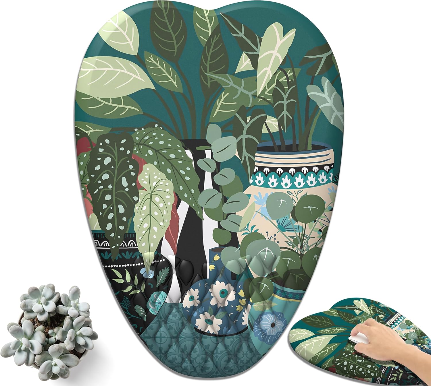 Ergonomic Design:8-degree incline and massage raised design, ergonomically designed to enhance air circulation to keep your wrists dry and make you feel more comfortable while working.Milk Silk Fabric:The surface is made of milk silk fabric, no smell, no abrasion, no pilling, soft and comfortable touch.Smooth Surface:Rovides effortlessly glide for any mouse. Ensure ensure mouse pinpoint fast & accuratrly, compatible with any mice.Memory Foam Filling:Quality memory foam has the right amount of stress. Allows your wrists and arms to be in a relaxed state. No denting and deformation.PU Base:Good anti-slip effect on most surfaces. Allowing you to freely move your mouse without interruption, no need to worry about the mouse pad slipping away.Heart-Shaped Design:not only easy for you to use, but also to decorate your desktop and show your personal style.Printing and dyeing process:Using hot-press printing technology, Theink is fully integrated into the inner layer of the fabric,Printed products are rich in patterns,Strong in color and washable,Does not fade.Perfect after-sales service:If you have any questions, Please email me immediately!