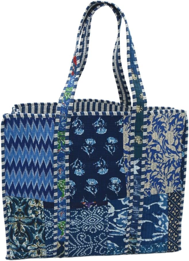 Elevate your style with this exquisite handmade, block-printed, quilted tote bag crafted from 100% cotton. Perfect for travel, grocery shopping, beach trips, or everyday use, this spacious and washable bag offers both functionality and elegance. Embrace the artisanal craftsmanship and timeless appeal of this one-of-a-kind accessory that effortlessly combines tradition and modern flair.