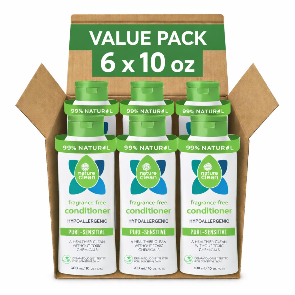 Nature Clean's Pure-Sensitive Fragrance-Free Conditioner is crafted for sensitive skin and scalp, providing a soothing and lightweight treatment. Formulated with the gentlest natural ingredients, it ensures soft and manageable hair without irritation. Our hypoallergenic, dermatologist-tested conditioner is unscented and safe for color-treated hair. Nature Clean prioritizes your well-being by excluding harsh chemicals like parabens, sulfates, phthalates, silicone, synthetic fragrances, and more. Embrace a hair care routine that is vegan, biodegradable, and safe for septic tanks and greywater systems. Experience the purity of Nature Clean for healthy, nourished hair.