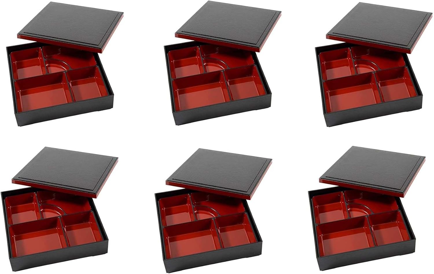 Bento box for your Japanese style meal. Nice lacquered plastic food box is also known as an obento box and has 6 compartments to keep your foods separated.
