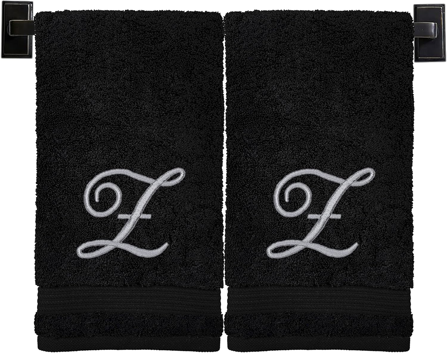 | Model Name | Black Hand Towels for Bathroom - Silver Monogram |