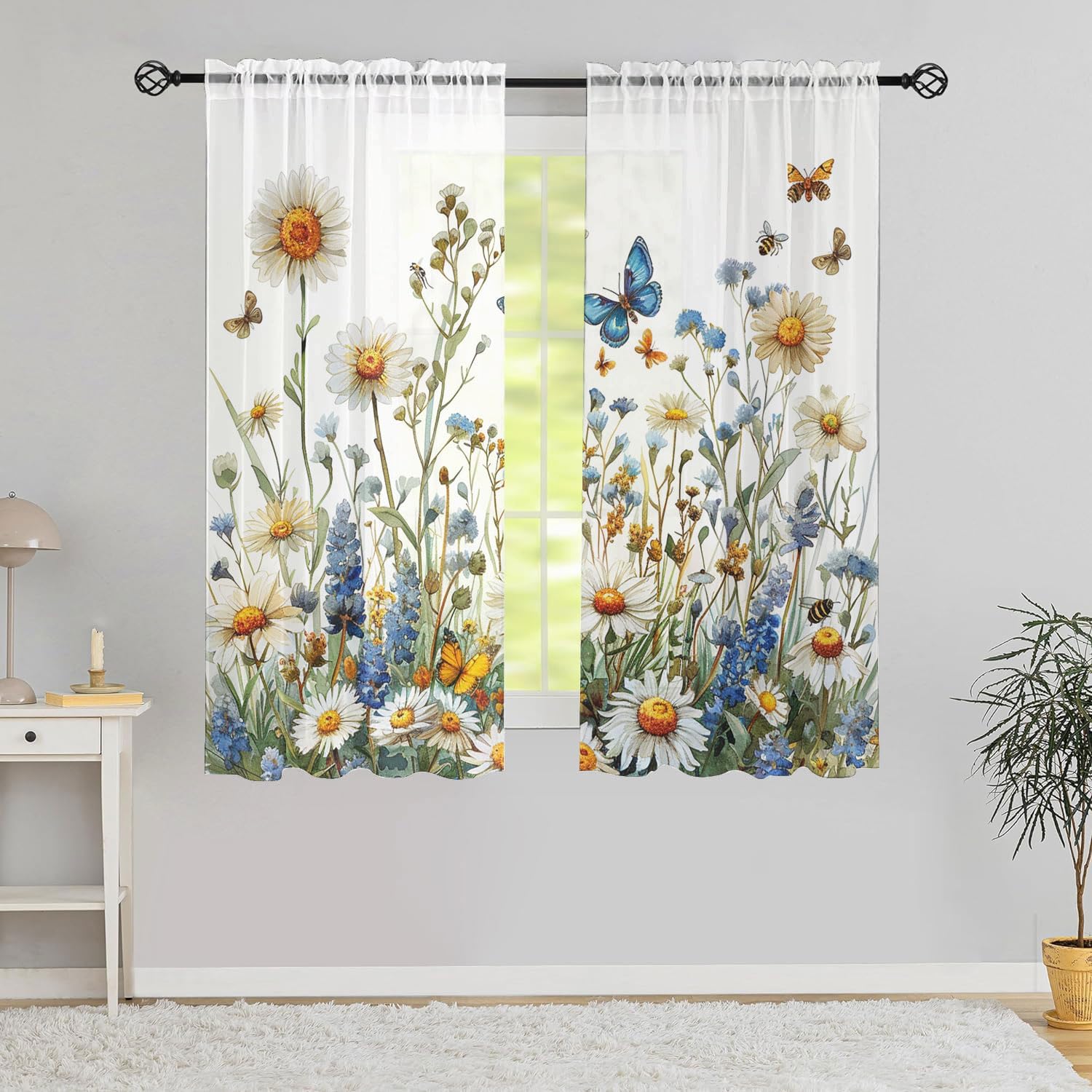 Package Included:Window curtains 2 Pcs set ( two panels).Unique Design:Provides the lightweight silky with a more vertical sense to make the Semi-Shading curtains more elegant.Can be paired with different scenarios and superimposed designs on other curtains.Protecting furniture from direct damage and prove your life a hazy and softer vision.Allowing natural light flowing into your room, while still providing privacy and right balance the light, avoid direct sunlight and give you light & airy feel.These printed curtains are perfect for living room, bedroom, kids room, kitchen, yard, patio, parlor etc. Easy Care Instructions:Machine washable in cold water.Do not bleach.Tumble dry on low.Low temperature ironing.Notes:For your curtains to be more perfect, please choose a size 5-10 Inch larger than the actual window width.
