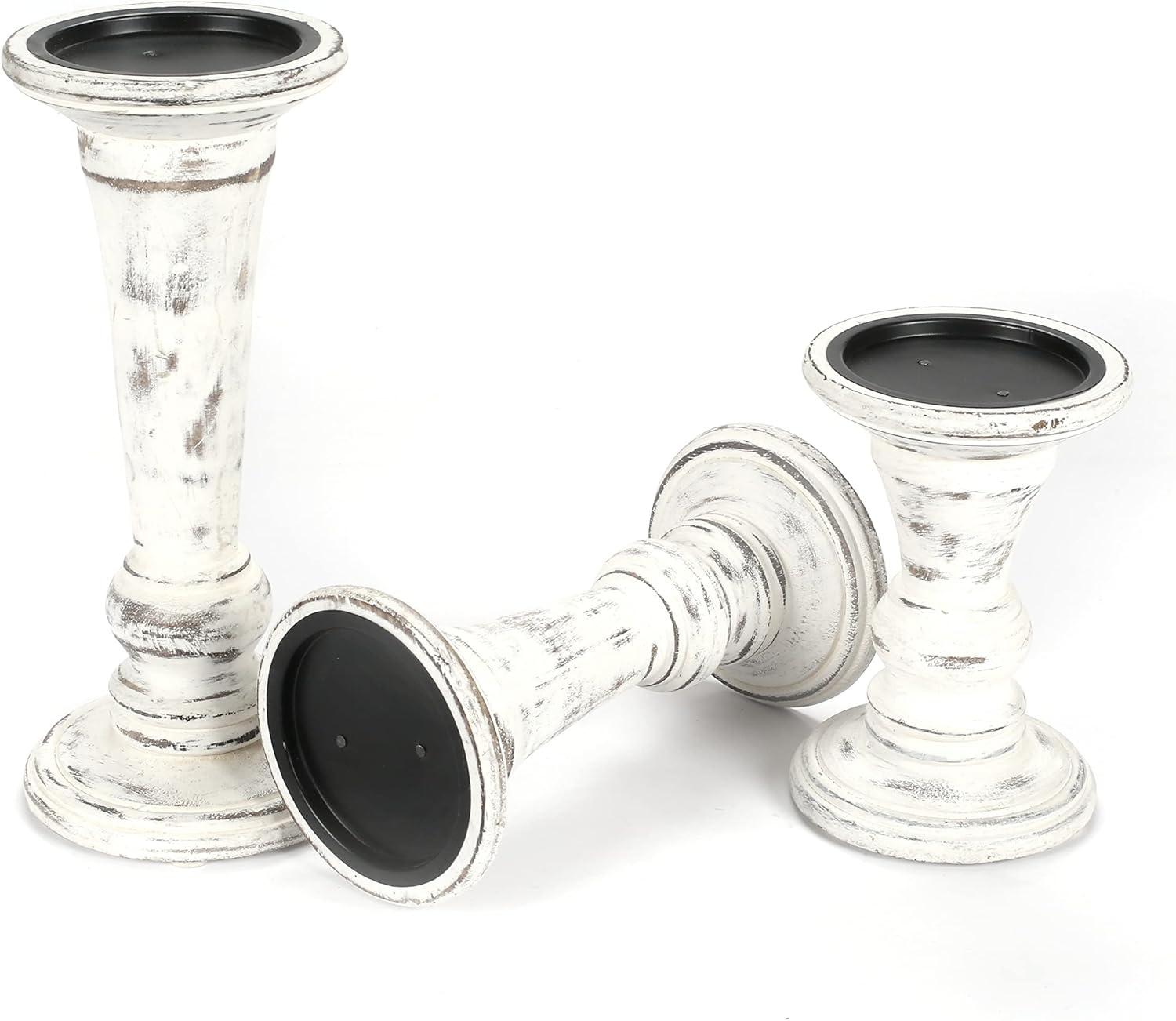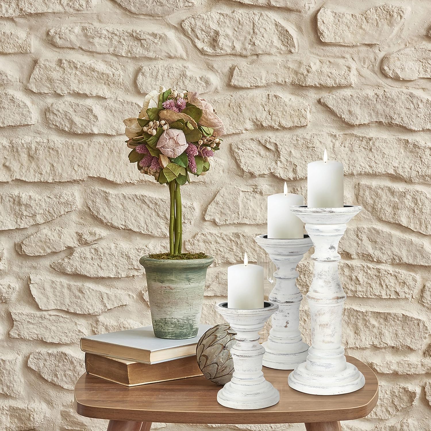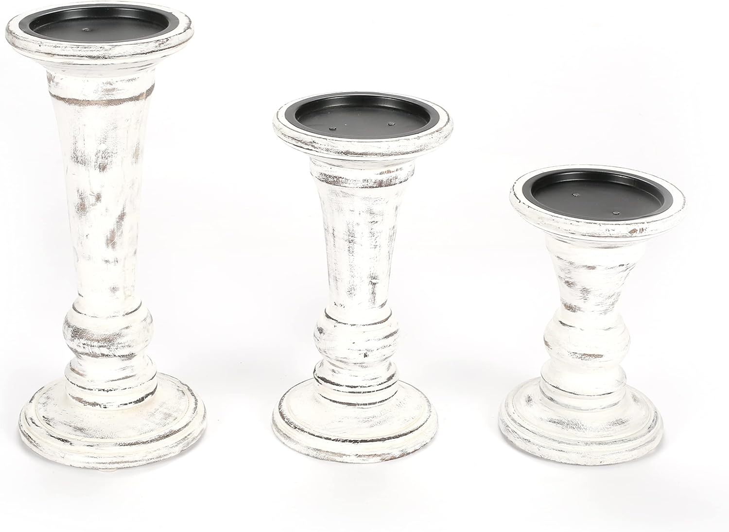 Handcrafted of sustainable gorgeously grained mango wood that has a time worn look, the set offers 2 candlestick holders. Featuring graceful designs of traditional farmhouse elegance, this set of 2 handmade wooden candlestick holders will showcase your dinner table and any occassion. Perfectly sized for candle light dinner.