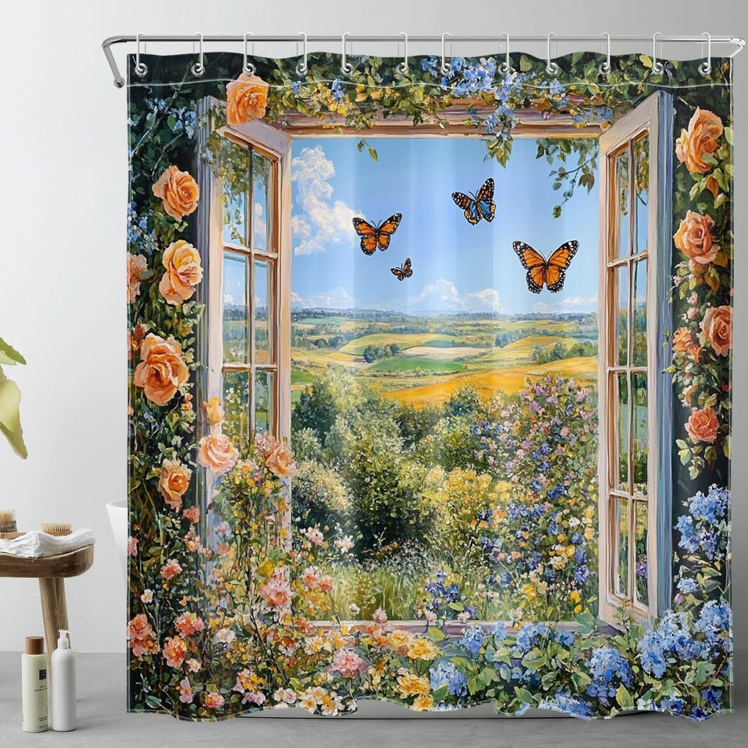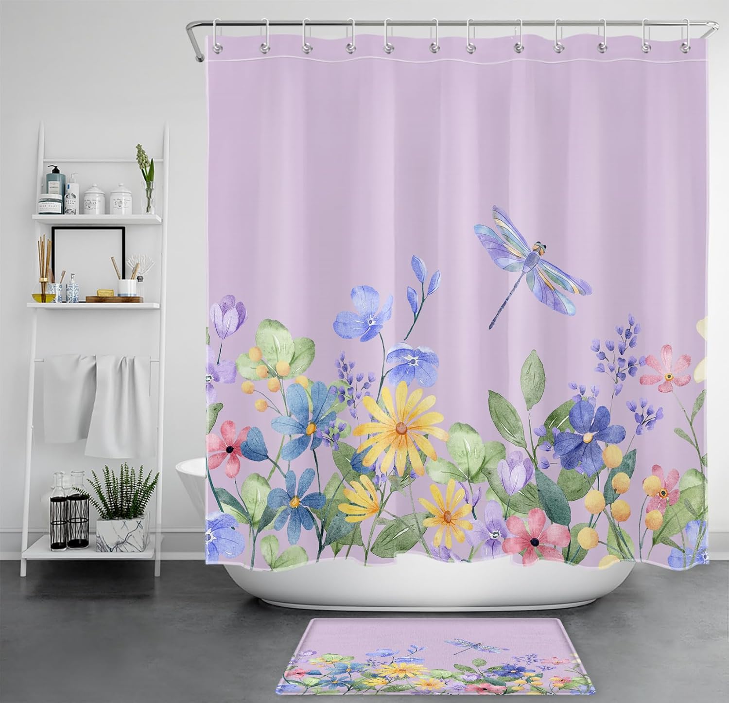 WEENEO Bathroom Shower Curtain SetMaterial and Unique Design:This flower shower curtain is made of polyester fabric and bath rug is made of memory foam(slow spring back foam),designed with HD digital printing technology,clearly and not fade. We have our own factory and professional design team, different styles of shower curtain patterns can be designed. If you have a favorite pattern, you can let us know to meet your needs. Size:72W x 72L Inches (180cm x 180cm) fabric shower curtain ,23W x 15L inches bath mat.There are also other sizes available in the store. Features:Easy to hang:Fabric shower curtain has 12 hooks,easy to install and slide. Our bath rug thin design enough to open the door over the floor mat without getting stuck. Easy to care:Hand or machine wash,Multipurpose:This farmhouse shower set curtain can be a great gift for family or friends. It can not only be used to decorate bathrooms to protect privacy, but also as curtains for various purposes such as party backgrounds, door curtains, wall decorations, etc.Package Included:1 72"W x 72"L shower curtain. 1 23"W x 15"L bath rug. 12 shower curtain hooks. Warm Notice:1. Due to the different displays on computer monitors, there may be slight color differences between the actual product and the screen.2. Due to manual measurement, there may be a deviation of 1 to 3 cm.