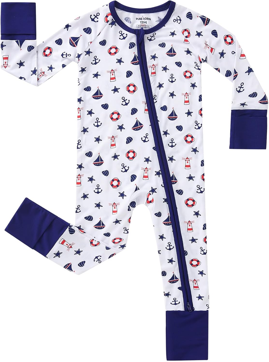 pureborn Baby Infant Boys Girls Zipper Sleeper Snug Fit Viscose from Bamboo Pajamas 0-24 Months
